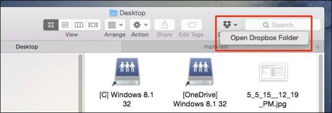 Látja, hogy itt jelenik meg ez a Dropbox-integráció. Megjegyzés: ha testre szabja a Finder eszköztárát, eltávolíthatja ezt a gombot (vagy bármely más), de nem fogja letiltani ezt a bővítményt.