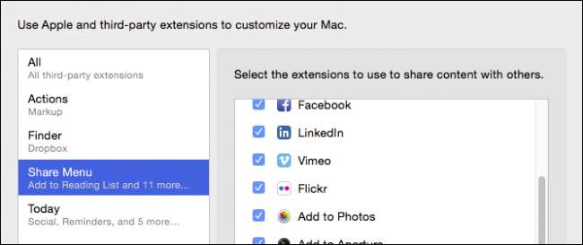 A Megosztás menüt valószínűleg mindenki ismeri, aki OS X-et használ. Itt hozzáadhat vagy eltávolíthat funkciókat az operációs rendszer egészében megjelenő Megosztás menüből.