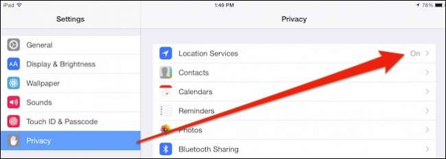 Használnia kell iPad helymeghatározó szolgáltatásait? Lehetséges, de több mint valószínű, csak bizonyos alkalmazások esetén. A Beállításokban érintse meg az „Adatvédelem” gombot, majd nyissa meg a „Helyszolgáltatások” lehetőséget.
