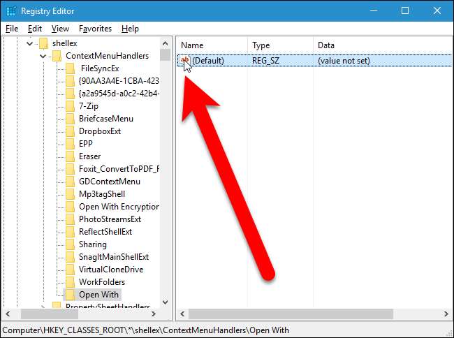 A jobb oldali ablaktáblában kell lennie egy Alapértelmezett értéknek. Kattintson duplán az „Alapértelmezett” elemre az érték szerkesztéséhez.