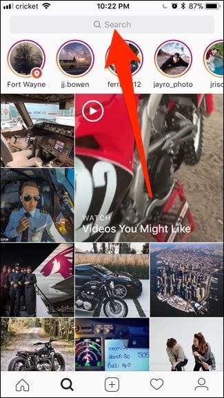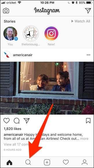 Először nyissa meg az Instagram alkalmazást, és koppintson az alján található keresési fülre.