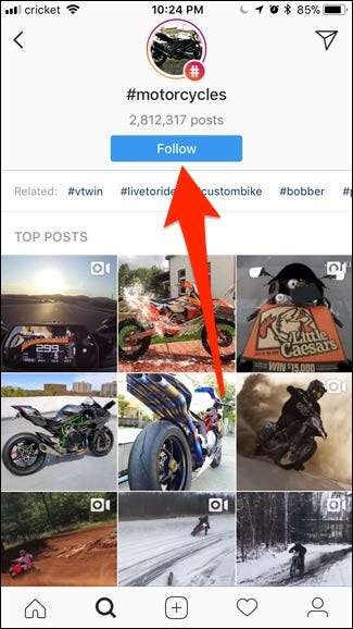 Miután kiválasztott egy hashtaget, megérintheti a tetején található kék „Követés” gombot.