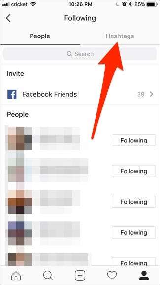 Az összes követett hashtag listájának megtekintéséhez lépjen a profiloldalára, és érintse meg a „Követés” elemet.