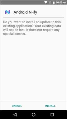 Minden gonddal, irány ide, hogy megragadja a legújabb N-ify apk-t és töltse le a készülékére. Ez elérhető az Xposed „Letöltés” szakaszban is, de úgy tűnik, hogy ez a verzió elavult. Közvetlenül az internetről húzva biztosíthatja a legújabb verzió használatát (amely magában foglalja a jövőbeli automatikus frissítési funkciót).