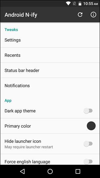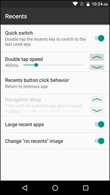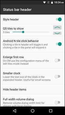 A nagyok azonban a Legutóbbi, az Állapotsor fejléce és az Értesítések lesznek - itt találja meg a leghasznosabb és N-szerű lehetőségeket. Megcsíphet olyan dolgokat, mint az Értesítési árnyékban megjelenítendő Gyorsbeállítás csempék száma, a legutóbbi alkalmazások közötti váltáshoz szükséges dupla koppintási sebesség, és akár az „Elvetés” gombot is kicserélheti, hogy az Értesítés árnyékban az „Összes törlése” felirat olvasható legyen.