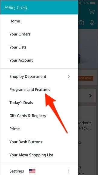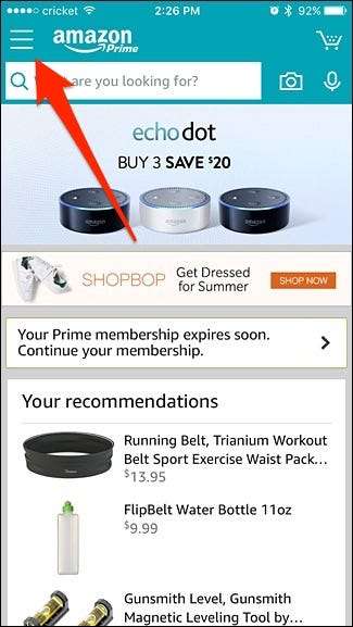 Kezdje azzal, hogy megnyitja telefonján az Amazon alkalmazást, és megérinti a menü gombot a képernyő bal felső sarkában.