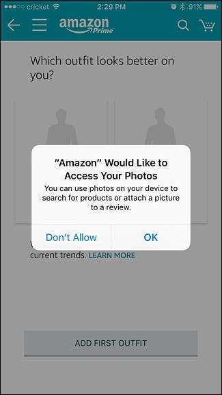 Előfordulhat, hogy megjelenik egy előugró ablak, amely engedélyt kér az Amazon alkalmazástól a telefon fotóinak és kamerájának eléréséhez.