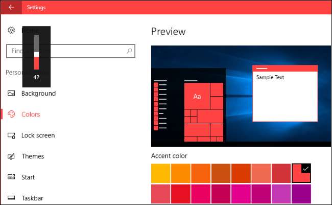 A szín is testreszabható, és követi az akcentus színe a Beállítások> Testreszabás> Színek menüpontban választhatja ki.