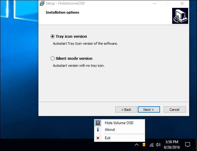 Ha szeretné, akkor ehelyett telepítheti a HideVolumeOSD csendes módú verzióját. Ez lehetővé teszi a kötet OSD letiltását anélkül, hogy a tálcán futna egy alkalmazás.