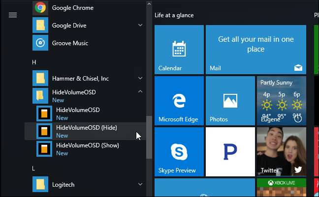 A következő bejelentkezéskor a Windows automatikusan futtatja a „HideVolumeOSD (Hide)” alkalmazást, és elrejti a kötet OSD-jét anélkül, hogy elrontaná a tálcát.