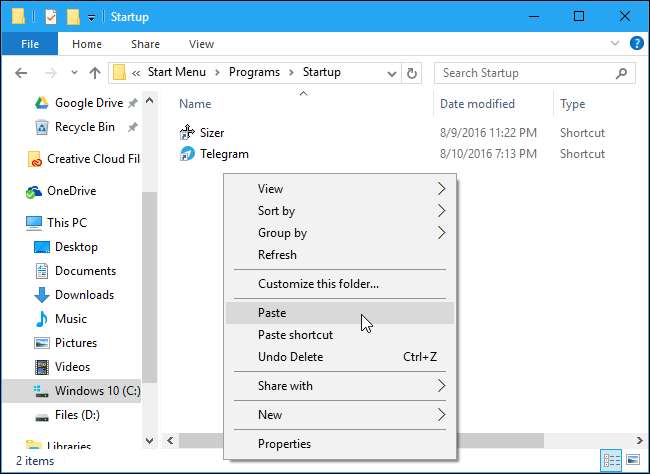 ÖSSZEFÜGGŐ: Programok, fájlok és mappák hozzáadása a rendszer indításához a Windows rendszerben