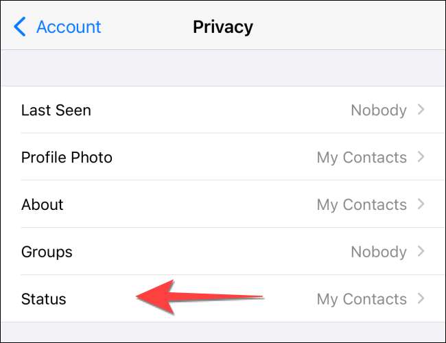 A Facebookkal ellentétben WhatsApp nem engedi meg Korlátozza a specifikus állapotfrissítéseket az emberek kiválasztásához . Azonban korlátozhatja, hogy ki minden látható az állapotfrissítések.