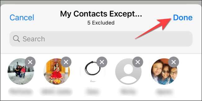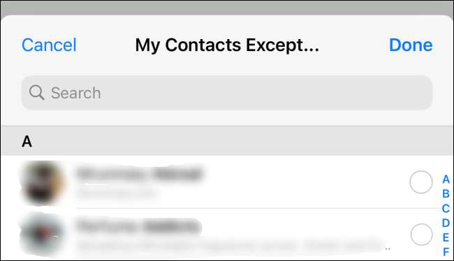 Válassza ki a „Címtár Kivéve” opciót, és akkor majd kell, hogy vegye az adott barát, akitől szeretne rejteni a jövőben WhatsApp állapotát. Görgetés és kiválaszthatja a névjegyzék Vagy keresse meg őket név szerint.