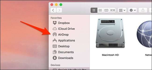 Ezután lépjen a Mac számítógépére, és nyissa meg az AirDrop-ot a Finder ablak megnyitásával, majd a bal oldali sávon válassza az „AirDrop” lehetőséget (vagy nyomja meg a Shift + Cmd + R billentyűkombinációt).