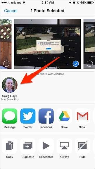 Az „AirDrop” részben látnia kell a Mac listáját. Koppintson rá a kiválasztott fényképek Mac számítógépre történő átviteléhez.
