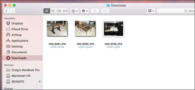 Mac számítógépén nyissa meg a „Letöltések” mappát az átvitt fényképek megtekintéséhez.