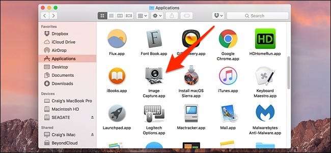 Csatlakoztassa iPhone készülékét a Mac számítógépéhez, majd nyissa meg az Image Capture alkalmazást. Ezt az alkalmazást megtalálhatja az „Applications” mappában vagy a Spotlight Search segítségével.