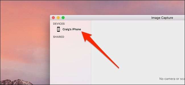 A „Képrögzítés” ablakban kattintson az iPhone készülékére az ablak bal felső sarkában található „Eszközök” listában. A folytatás előtt győződjön meg arról is, hogy iPhone-ja fel van-e oldva.