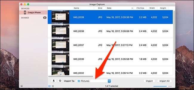 Kattintson egy fotóra, ha rákattint. Tartsa lenyomva a Cmd billentyűt, és kattintson több fotó kiválasztásához. Ha az összes fotót kiválasztotta, kattintson az „Importálás” legördülő menüre, majd válassza ki a mappát, ahová szeretné menteni a fényképeket.