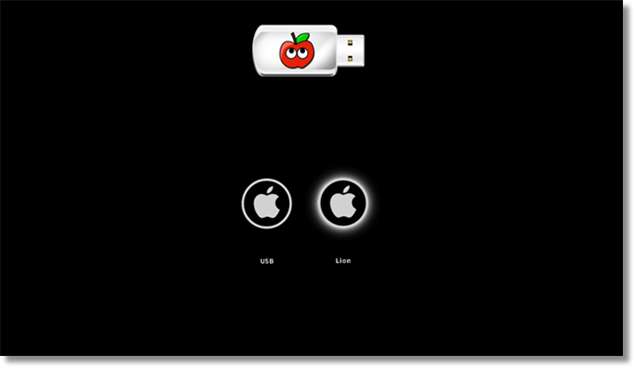 Amikor újraindul, újra kell indítania a telepítő USB-jéről. Ezúttal 2 választási lehetőséged lesz. Vagy a telepítő újraindításához, vagy az éppen telepített OS X rendszerhez történő indításhoz (és ezt kell tennie). A nyílbillentyűkkel válassza ki a Lion nevű meghajtót (vagy bármi más nevet), majd nyomja meg az Enter billentyűt. Néhány másodperc múlva az asztalon lesz. És igen, előfordulhat, hogy az első indításkor kérni fogja a billentyűzet csatolását, ez egyszeri folyamat. Csatlakoztasson egy USB billentyűzetet a laptophoz, és a jelzés eltűnik, majd kihúzhatja a billentyűzetet.