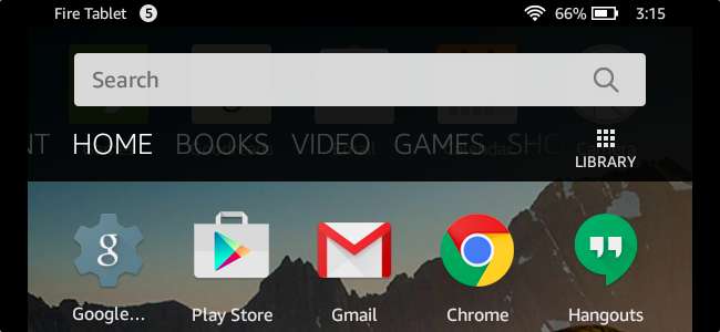 Az Amazon Fire Tabletje rendszerint az Amazon Appstore-ra korlátoz. De a Tűz Tábla fut Tűz OS , amelynek alapja az Android. Telepítheti a Google Play Áruházat, és hozzáférést nyerhet minden Android-alkalmazáshoz, beleértve a Gmailt, a Chrome-ot, a Google Térképet, a Hangoutsot és a Google Play több mint egymillió alkalmazását.