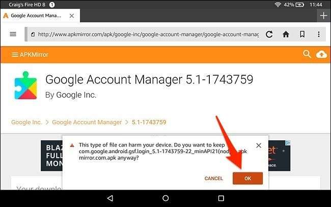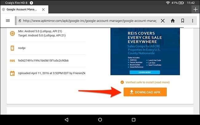 Ezután négy .APK fájl van, amelyet le kell töltenie a táblagép beépített Silk böngészőjével. Ennek legegyszerűbb módja, ha megnyitja ezt az oktatóanyagot a Silk böngészőben, és rákattint az alábbi linkekre, amelyek a letöltési oldalakra vezetnek. Ezek az APK Mirror-ból származnak, amely egy bevált és megbízható forrás az Android APK-khoz.