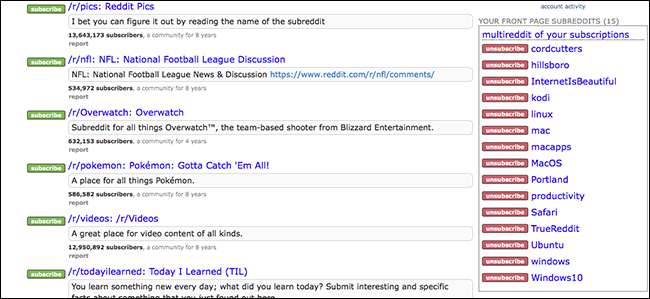 Ha ezek bármelyike ismerősnek tűnik, itt az ideje, hogy törölje előfizetését. Irány ide Reddit.com/reddits . A jobb oldali panelen megjelenik a subbredditek listája: