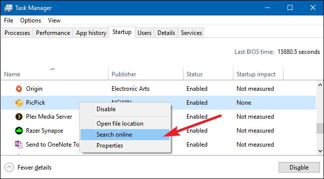 Mielőtt elkezdené letiltani az alkalmazásokat, érdemes egy kis kutatást végezni arról, hogy az indító alkalmazás mit csinál. Néhány indító alkalmazásra szükség van az operációs rendszer vagy a használt programok megfelelő működéséhez. Szerencsére a Feladatkezelő ezt megkönnyíti.