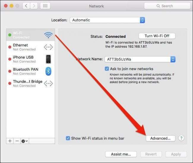Először nyissa meg a hálózati beállításokat, majd kattintson az „Advanced” gombra.