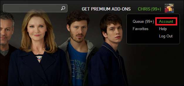 A kezdéshez nyissa meg a fiókbeállításokat: kattintson a portréjára a Hulu fő splash ablakának jobb felső sarkában, és válassza a legördülő menü „Fiók” elemét.