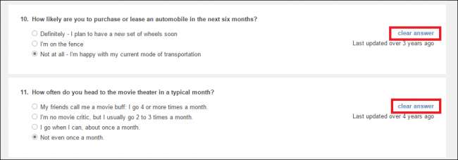 Ha korábban már válaszolt egy kérdésre, de azóta meggondolta magát az adott témában vagy termékben, törölheti korábbi válaszait a felmérés melletti „egyértelmű válasz” linkre kattintva.