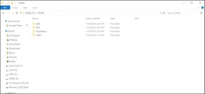 Később könnyebb lesz, ha a ROM fájlokat minden rendszerhez külön almappákba osztja szét. A NES ROM-jaim egy „NES” feliratú mappában vannak, a GameBoy Advance ROM-ok pedig egy „GBA” feliratú mappában stb. Miután beállította a ROM-mappáját, másolja a teljes mappát az USB-meghajtóra.