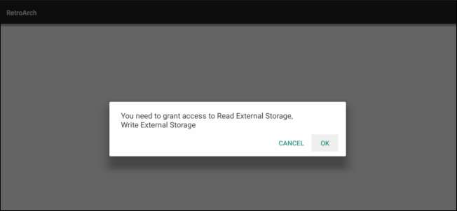 A RetroArch első megnyitásakor engedélyt kér a tárhelyének elolvasásához. Az alkalmazásnak erre van szüksége a ROM-fájlok olvasásához, ezért meg kell adnia ezt az engedélyt. A RetroArch használatához megköveteli a játékvezérlő használatát, így innentől kezdve minden utasítás ezt szem előtt tartja.