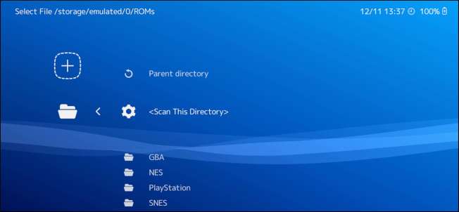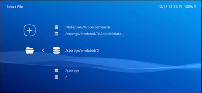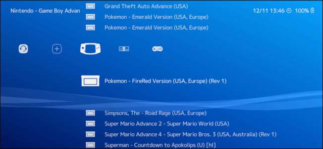Pillanatba telik az összes ROM-fájl beolvasása, de ezt követően nyomja meg a vezérlő B gombját, amíg vissza nem tér a RetroArch kezdőlapjára. A bal oldali hüvelykujjával léphet jobbra, és ikonok jelennek meg az összes olyan rendszeren, amelyhez ROM fájlja van.