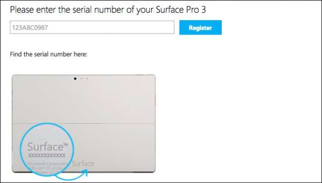 Először át akar menni A Microsoft webhelyét, és töltse le a helyreállítási USB-képet . Meg kell adnia a sorozatszámot a Surface táblagép hátoldalán.