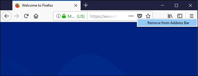 Ha csak annyit szeretne tenni, hogy eltávolítja a gombot, akkor ez egyszerű: csak kattintson a jobb gombbal a gombra, és válassza az „Eltávolítás a címsávból” lehetőséget. tudsz távolítson el bármit ily módon valójában - nemcsak a Zseb gomb. A Firefox nagyon testreszabható.