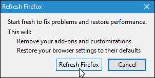 A Firefox újraindul, és megjelenik egy üzenet. Válassza ki, hogy vissza szeretné-e állítani az összes megnyitott ablakot és lapot, vagy csak a kívántakat, majd kattintson a „Menjünk!” Gombra.
