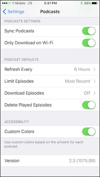 Ne feledje, hogy ezeket a beállításokat alapértelmezettként alkalmazzák, és nem módosíthatja őket egyes podcastok esetében. Például nem lehet automatikusan letölteni egy adott podcastot, míg a többi nem.