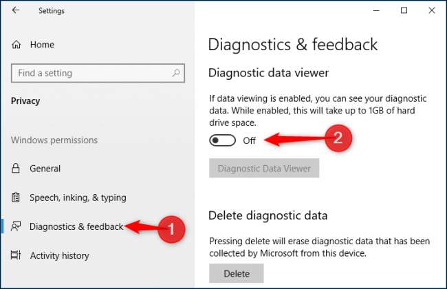 Az adatok megtekintésének engedélyezéséhez lépjen a Beállítások> Adatvédelem> Diagnosztika és visszajelzések menüpontra. Görgessen le a Diagnostic Data Viewer szakaszig, és fordítsa a kapcsolót „On” állásba.