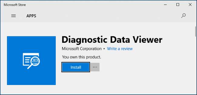 Kattintson a „Diagnostic Data Viewer” gombra, amely elérhetővé válik, és a Microsoft Store-ba kerül töltse le a Diagnostic Data Viewer alkalmazást Alkalmazás. Menj előre, és tedd ezt a folytatáshoz.