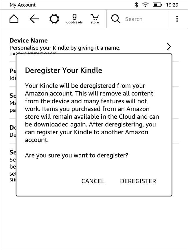 A megjelenő megerősítő ablakban érintse meg újra a „Regisztráció” elemet, és a Kindle leválasztásra kerül az Amazon-fiókjáról.