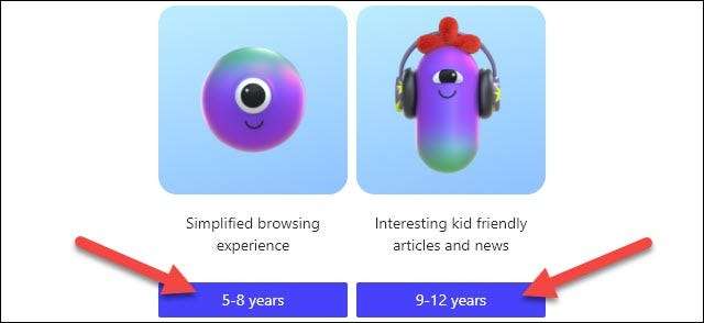 Gyerekek Mode két életkori tartomány beállítások: 5-8 vagy 9-12. Az idősebb korosztály kap egy korának megfelelő hírcsatorna az Új lap oldal, amely curates cikkeket MSN gyerekeknek.