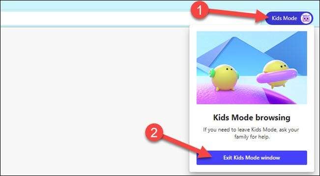 A kilépéshez Kids mód, hogy az egérrel a képernyő tetején, hogy felfedje a füleket, és címsorba. Kattintson a „Kids Mode” gombot, és válassza a „Kilépés Kids Mode ablak.”