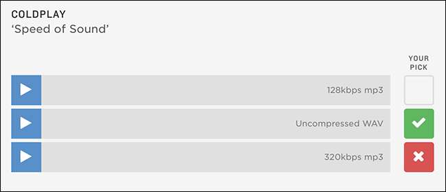 Ha kíváncsi vagy, nézze meg ezt a tesztet az NPR-től . Három formátumban mutatja be Önnek ugyanazt a zeneszámot: 128 kbps MP3, 320 kbps MP3 és tömörítetlen WAV. Csak ki kell választania a legjobb minőségű számot a választékból. Noha a legkevésbé jó minőségű pályát meglehetősen könnyen elkerülhettem, nem tudtam 320kbps és veszteségmentesen válogatni bármilyen következetességgel.