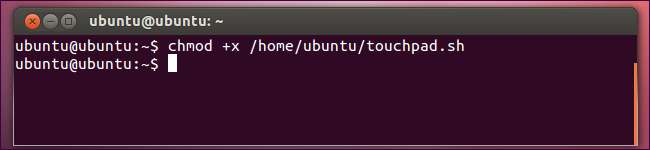 A fájl mentése után indítson el egy terminált, és futtassa a következő parancsot az új parancsfájl futtathatóvá tételéhez /home/name/touchpad.sh a szkript elérési útjával: