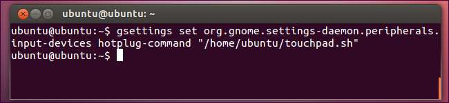 A gsettings állítsa be az org.gnome.settings-daemon.peripherals.input-devices hotplug-parancsot „/home/name/touchpad.sh”