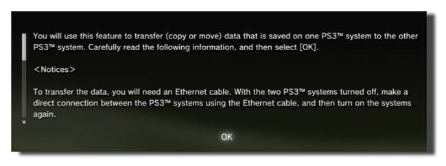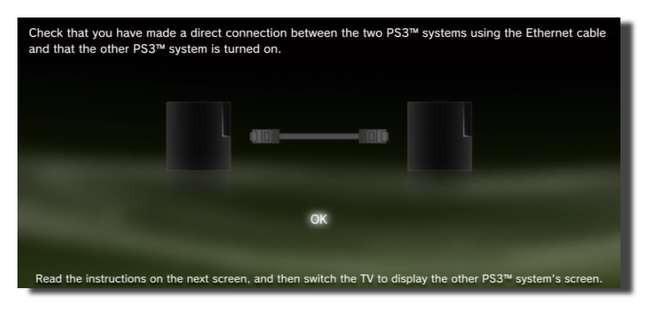 Ekkor csatlakoztatnia kell a régi és az új PlayStation 3-t egy Ethernet-kábellel. Az új PS3-at csatlakoztatnia kell a tévéhez is, hogy felkészülhessen az átvitel megkezdésére, amint a régi rendszer kapcsolatra vár.