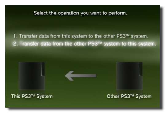 Ezúttal válassza az adatátvitel lehetőségét a másik PS3 rendszerről erre a rendszerre.
