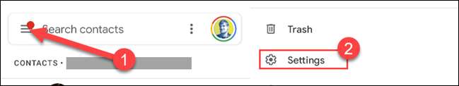 Például fogjuk használni A Google Kapcsolatok alkalmazásban Androidra. Nyissa meg az alkalmazást az Android készüléket, és érintse meg a hamburger menüt a bal felső sarokban. Válassza a "Beállítások" lehetőséget a menüből.