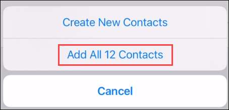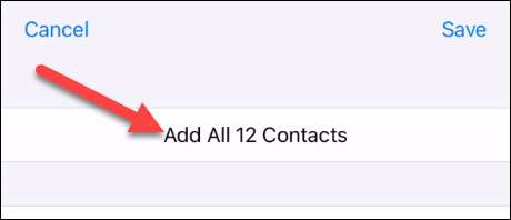 Most kiválaszthatja a névjegyek egyenkénti, hogy új kapcsolatokat, vagy az Egyesítés a meglévő kapcsolatokat. Átadják az összes koppintson a „Összes hozzáadása # Kapcsolatok” a tetején.